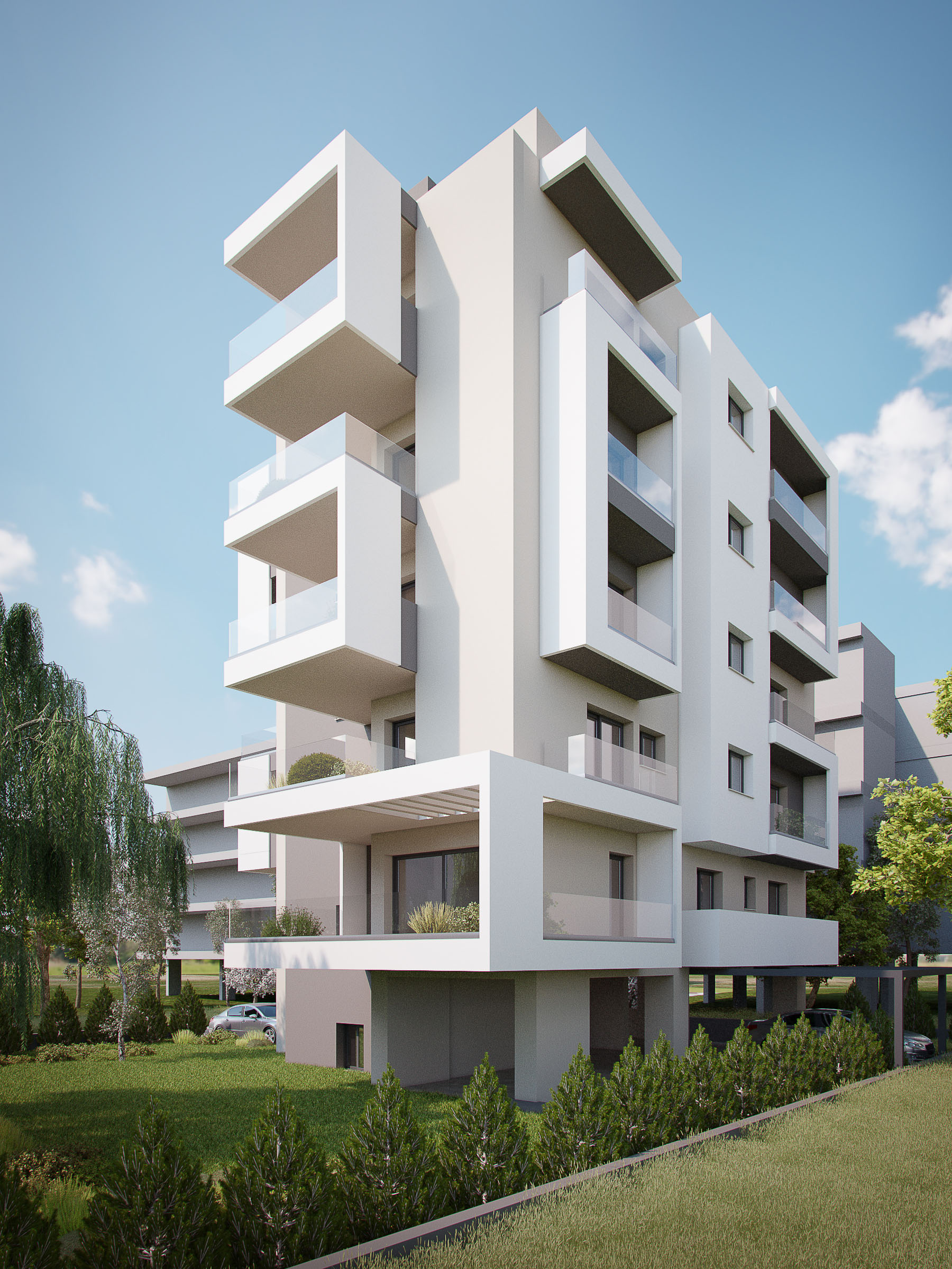 Στους 2ο 3ο, 4ο και 5ο όροφο υπάρχουν δύο διαμερίσματα των 72 τμ με 2 υπνοδωμάτια και των 64 τμ με επίσης 2 υπνοδωμάτια.